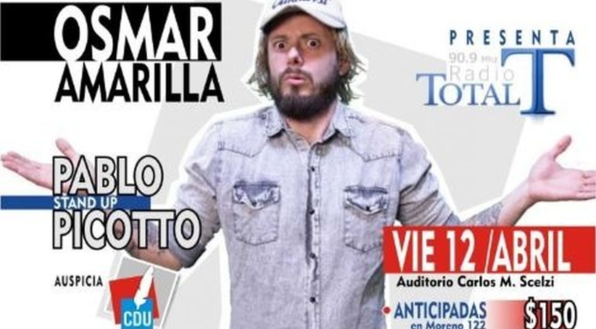Con auspicio de la Municipalidad, el comediante Pablo Picotto actuará en Concepción del Uruguay, donde el viernes 12 de abril presentará a Osmar...