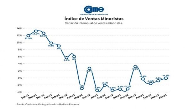 By La Ciudad10/05/2023Las ventas minoristas pymes descendieron un 0,1% en abril frente a igual mes del año pasado, medidas a precios constantes, y...