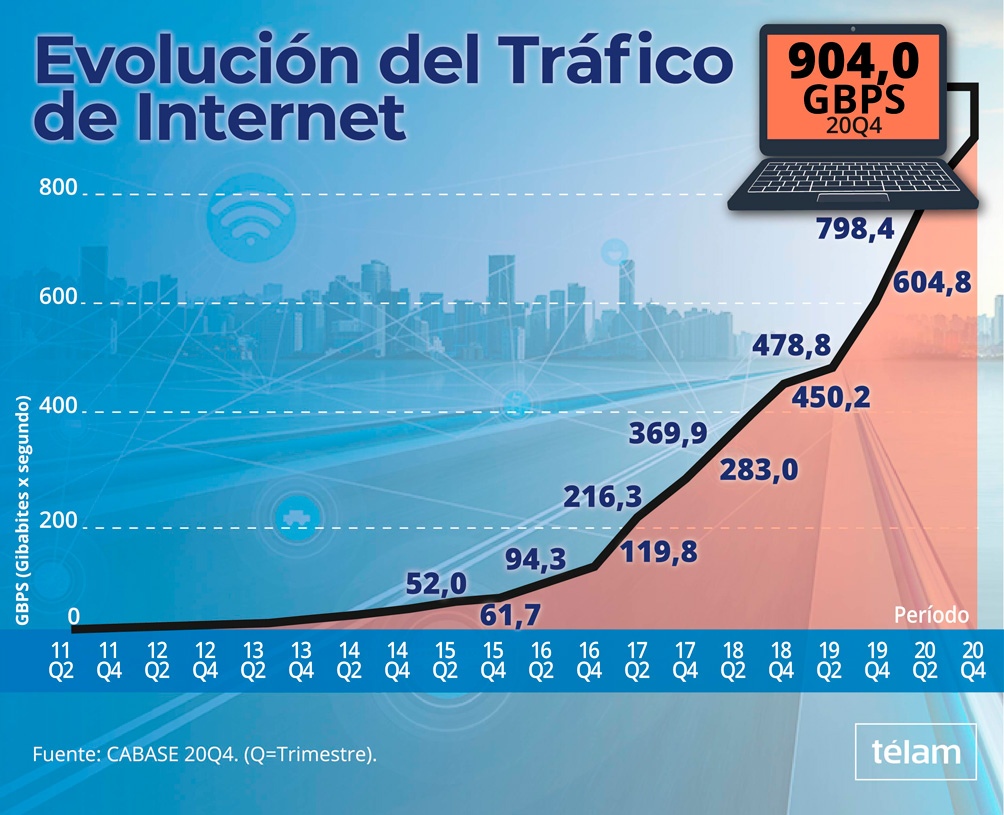 By La Ciudad20/06/2021El tráfico de internet en la Argentina registró en mayo un nuevo récord al alcanzar una media de 1 terabyte por segundo, equivalente a...