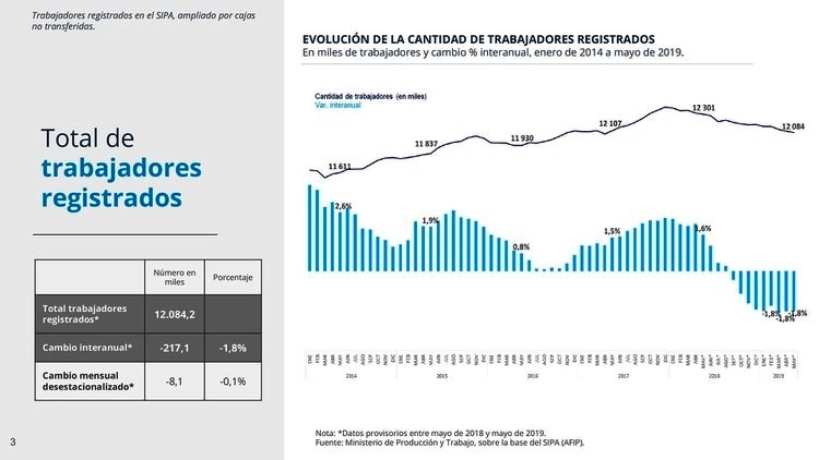 By La Ciudad31/07/2019Según las cifras del Sistema Integrado Previsional Argentino (SIPA), en mayo se registraron 12.084.200 trabajadores, 217.100 menos que en mayo del año pasado...