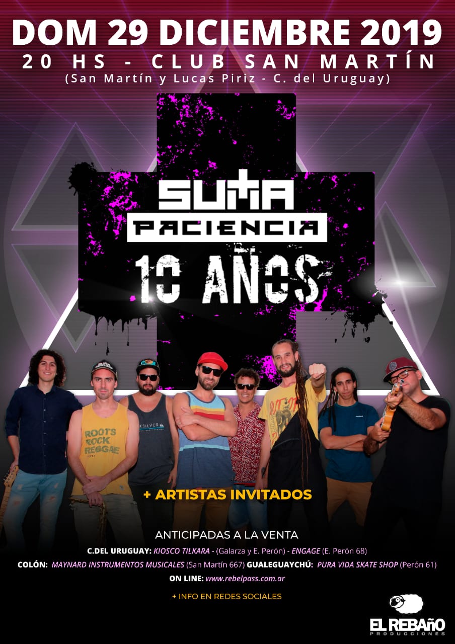 La cita será el próximo sábado 11, desde la medianoche, en Yupanqui Resto Bar. La banda de Concepción del Uruguay Suma Paciencia continúa...