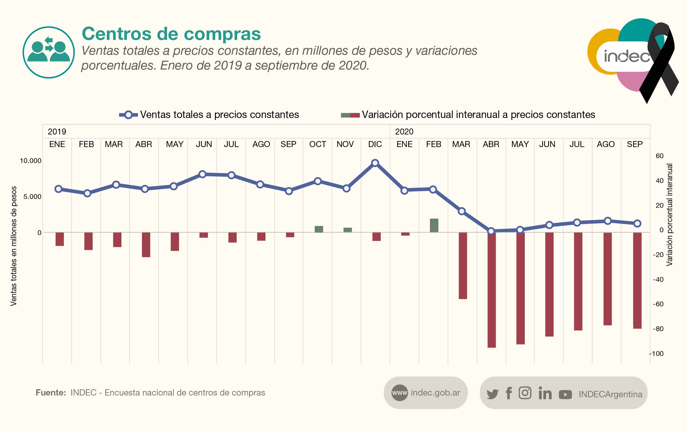 By La Ciudad12/12/2020Las ventas en los supermercado bajaron durante septiembre 2,3 % en relación con igual mes del año pasado, informó el Instituto Nacional de Estadística...