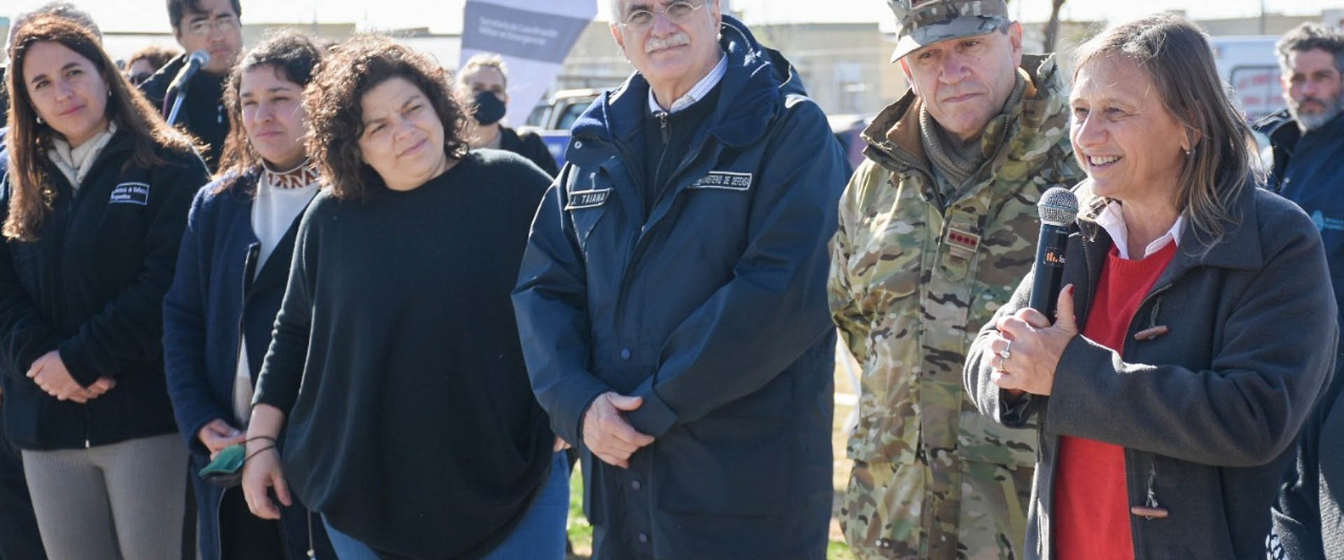By La Ciudad07/08/2022El ministro de Defensa de la Nación, Jorge Taiana, y las ministras de Salud de la Nación, Carla Vizzotti, y de Desarrollo Social...