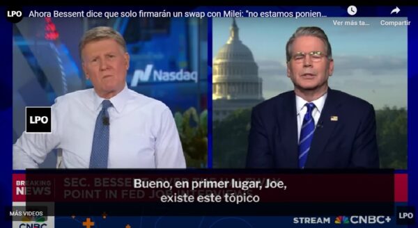 By Leo Iglesias05/10/2025El secretario del Tesoro sacó otro tuit de apoyo, pero luego dio una entrevista donde aclaró que no habrá ayuda directa como había...
