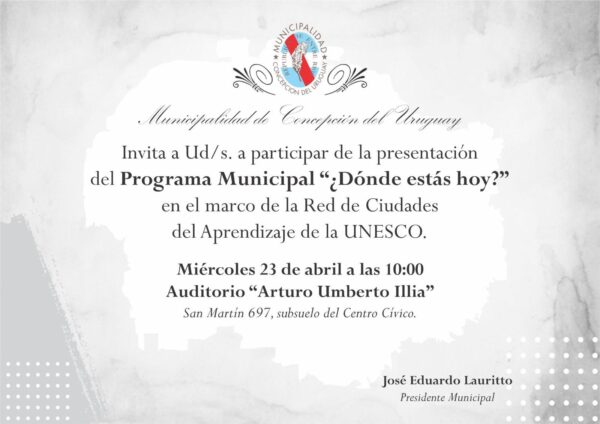By Leo Iglesias24/04/2025Este miércoles, la Municipalidad de Concepción del Uruguay presentaá el programa «¿Dónde Estás Hoy?» en el auditorio «Arturo Umberto Illia». La iniciativa busca...