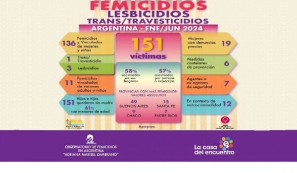 By Leo Iglesias10/08/2024La violencia contra las mujeres no cede: el Observatorio de Femicidios de la Defensoría del Pueblo de la Nación registró 147 femicidios entre...