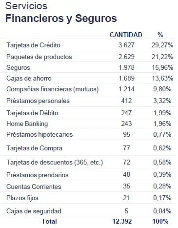 De igual manera, en la Provincia de Buenos Aires a inicios de julio se registraban más de 70.000 reclamos, estando en un 57% concentrados en la franja etaria de 30 y 50 años de consumidores/usuarios. Entre los diez rubros más cuestionados aparecen los servicios financieros y seguros (18% del total) y en su interior se destacaron las tarjetas de crédito (29%), paquetes de productos (21%) y seguros (16%), entre otros.