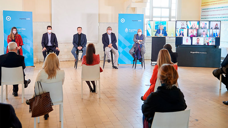El lanzamiento lo realizó mediante videoconferencia desde la Residencia de Olivos, a la vez que en el Museo de los Inmigrantes, en el barrio porteño de Retiro, lo acompañaron el ministro del Interior, Eduardo de Pedro; y los secretarios de Asuntos Estratégicos, Gustavo Beliz (titular del CES); y de Relaciones Parlamentarias; Institucionales y con la Sociedad Civil, Fernando Navarro; la secretaria de Innovación Pública, Micaela Sánchez Malcom; y el rector de la Universidad Nacional de Tres de Febrero, Aníbal Jozami.