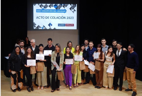 El Acto de Colación de 80 nuevos graduados y graduadas, correspondiente al período 2022- 2023, tuvo lugar el jueves 2 de noviembre en el Auditorio Municipal «Carlos María Scelzi» donde se realizó la tradicional entrega de diplomas, menciones y recordatorios a los egresados y egresadas de 15 carreras de la Sede Uruguay de la Facultad de Humanidades, Artes y Ciencias Sociales de la Universidad Autónoma de Entre Ríos.