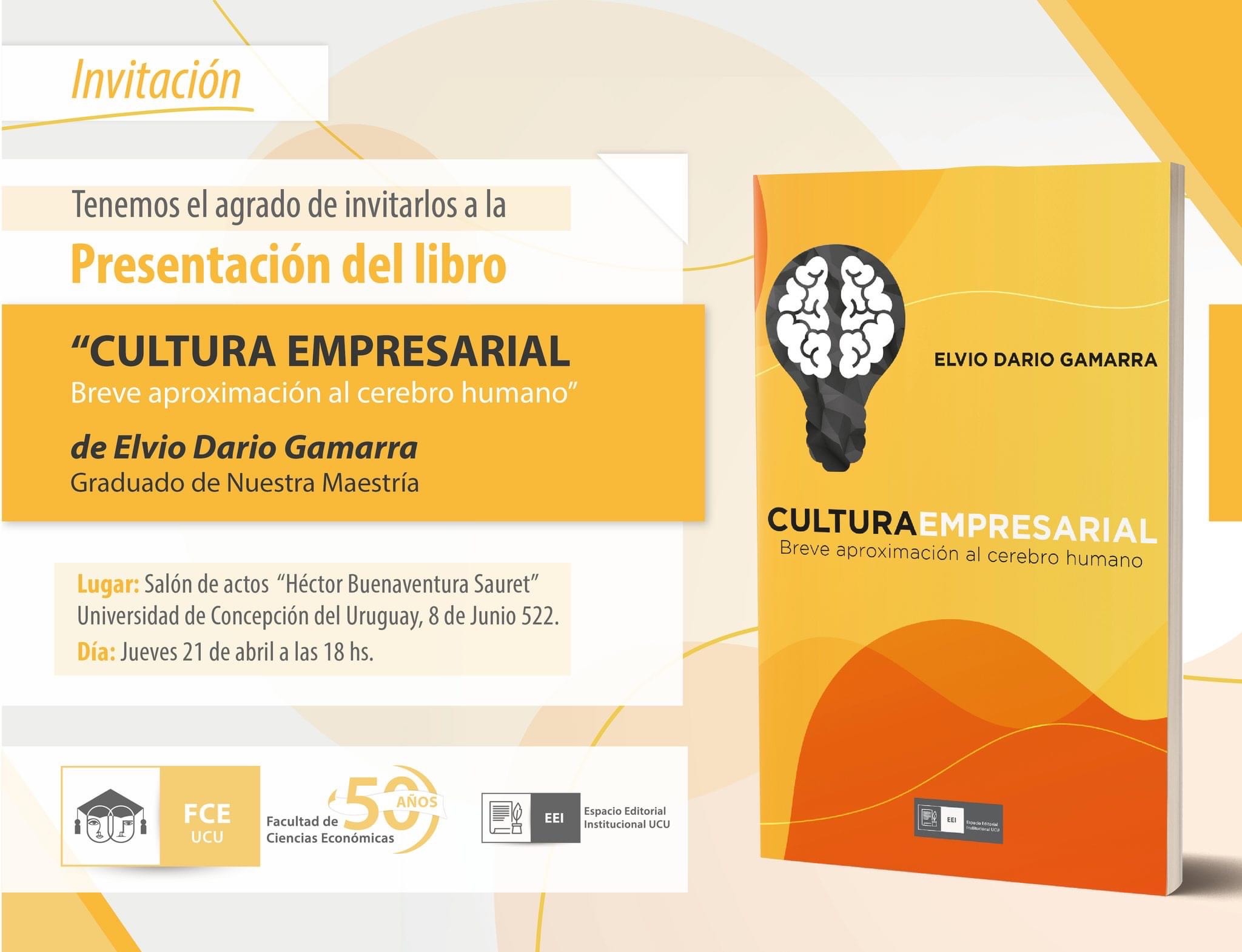 En el marco del 50 aniversario de la Facultad de Ciencias Económicas de la Universidad de Concepción del Uruguay, se llevará a cabo la presentación del libro «Cultura Empresarial: Breve aproximación al cerebro humano» de nuestro graduado Mg. Elvio Gamarra.En esta obra, realizada a través del Espacio Editorial Institucional UCU, el autor brinda las pautas para afrontar con éxito las habituales dificultades de las organizaciones, a partir de una adecuada interpretación de los comportamientos cerebrales de sus actores.