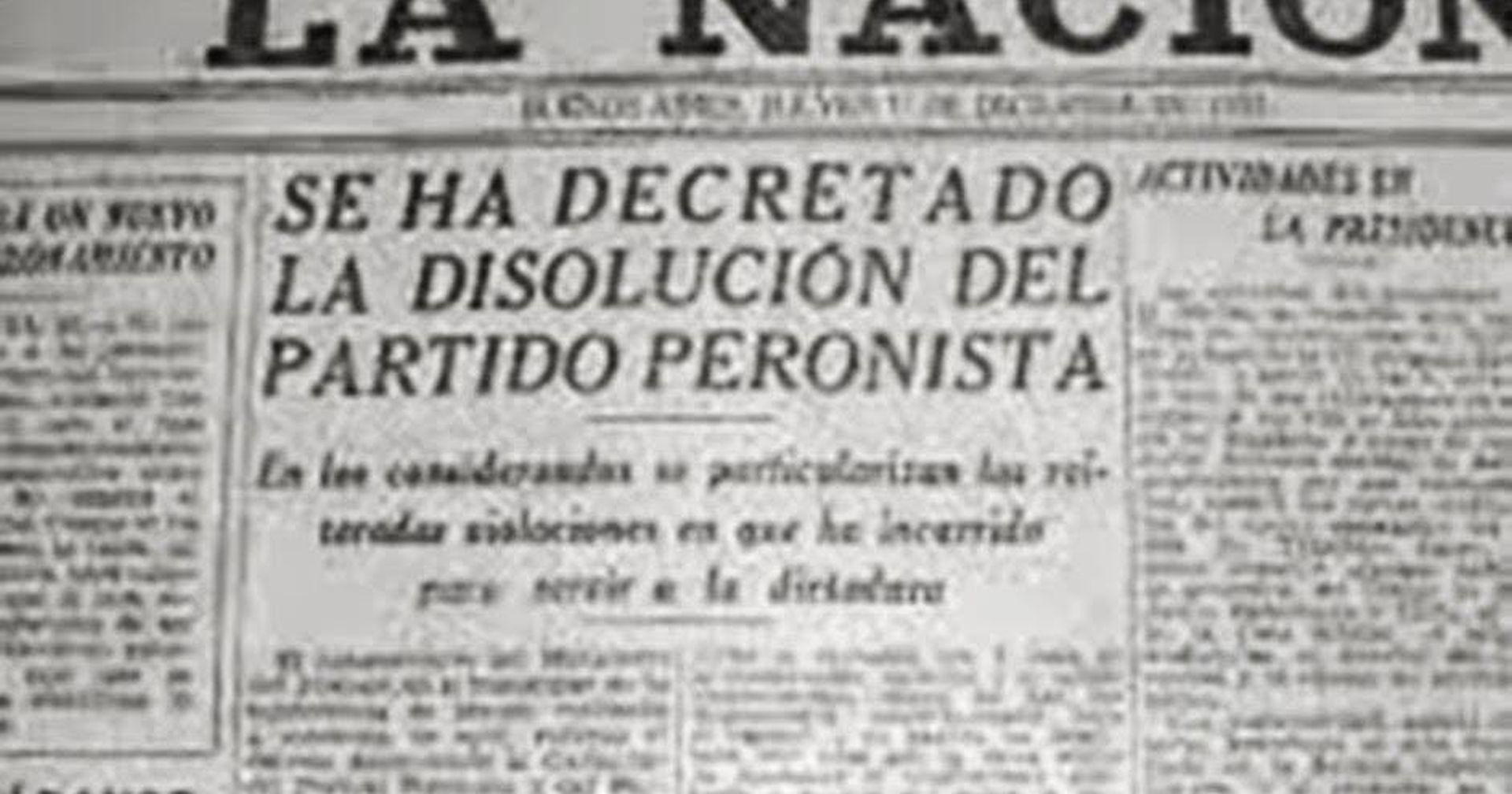 El día 30 de noviembre de 1955 Aramburu ordena la disolución del partido peronista.