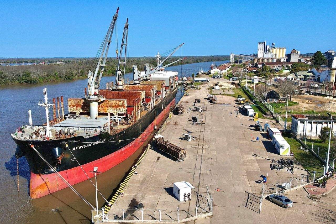 El puerto de Concepción del Uruguay recibió al África-Merlín, un imponente buque de bandera de Bahamas que amarró en los muelles 14 y 15 para llevar adelante una operación de carga de madera de pino a granel.