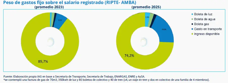 En este escenario, el problema no es solo cuánto falta para llegar, sino cuánto queda. Mientras los ingresos pierden frente a los precios, los gastos fijos avanzan: absorben 15 puntos más del salario que en 2023. El resultado es un cambio más profundo que la inflación misma, ya que el ingreso disponible se achica y el margen para vivir se reduce mes a mes.