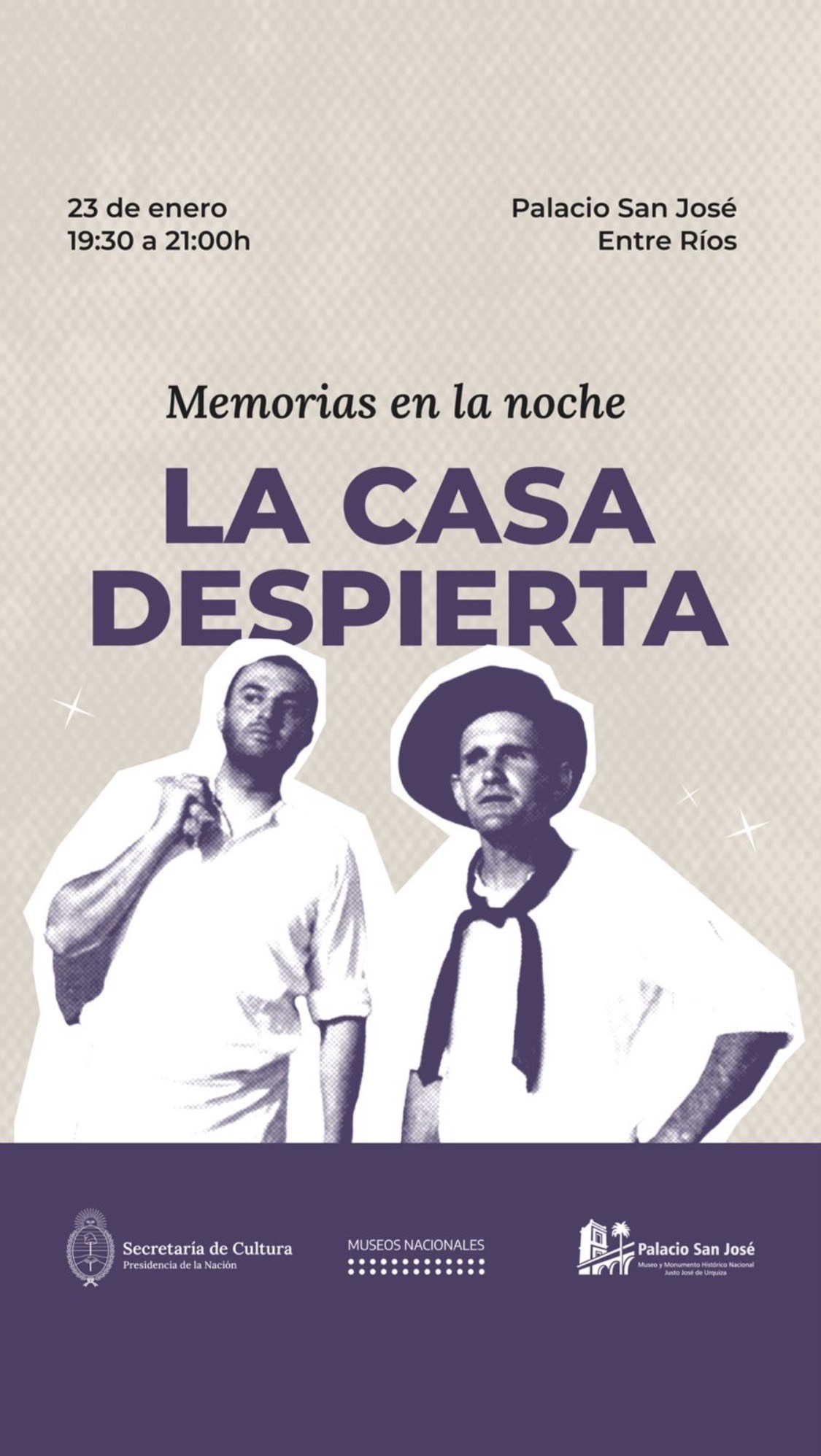 El viernes 23 de enero, cuando el sol baje y el museo cierre sus puertas, la historia volverá a caminar por los pasillos. La casa recupera su pulso a través de personajes del siglo XIX que regresan a las habitaciones, patios y jardines para compartir secretos, charlas
