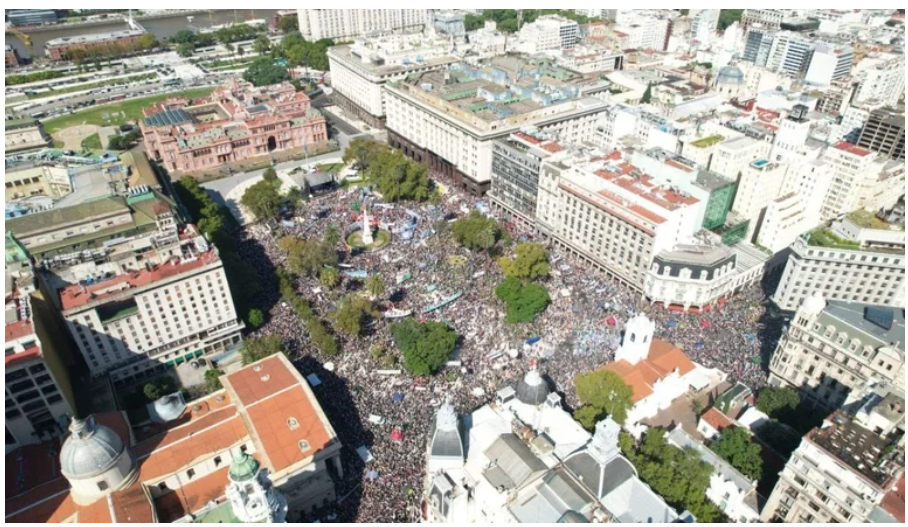 «Milei pide poderes absolutos para destruir el país y obligar a los gobernadores a que firmen la aprobación de la Ley Ómnibus antes del Pacto en Córdoba el 25 de Mayo. Es una extorsión y una traición a la Patria. El gobierno quiere arrastrar al país a una dictadura del Mercado», agregó el documento. Y señaló, en el mismo sentido, que «pedimos a los gobernadores que resistan ante las extorsiones del gobierno, que defiendan el territorio nacional y los recursos naturales, en otro tramo leído por la integrante de Madres de Plaza de Mayo Línea Fundadora, Taty Almeida.