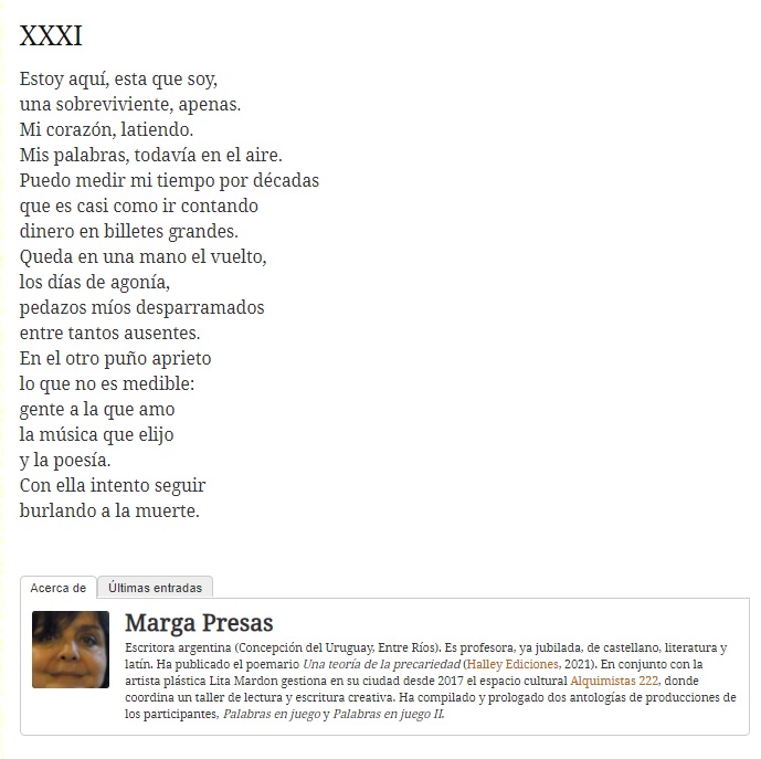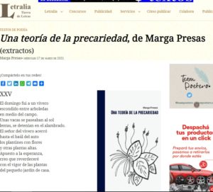 En el día de ayer, Letralia subió a las redes un extracto de la obra de reciente aparición “Una teoría de la precariedad” nuestra copoblana Margarita Presas.