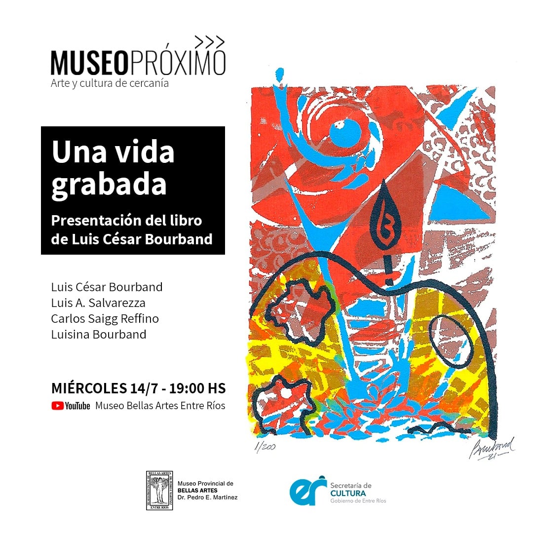 La presentación del nuevo libro de Luis César Bourband “Una vida grabada” se concretará el próximo miércoles a las 19 a través del canal de YouTube del Museo Provincial de Bellas Artes. En esta ocasión, el artista será acompañado por Luis Alberto Salvarezza, Carlos Saigg Reffino y Luisina Bourband.