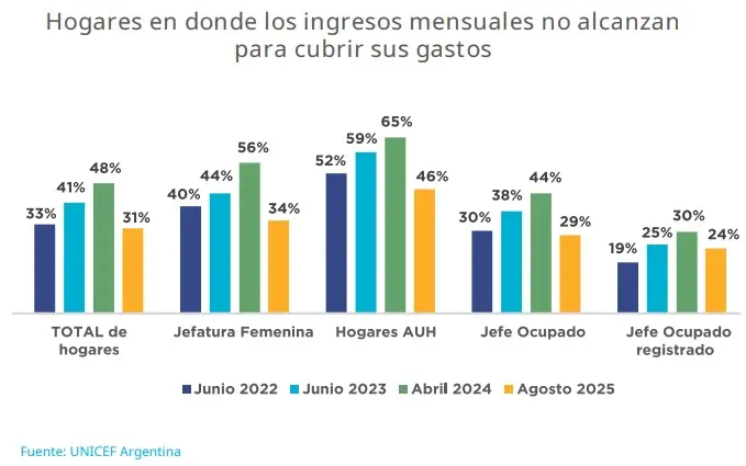El 31% de los hogares con niñas, niños y adolescentes de Argentina tiene ingresos mensuales que no alcanzan para cubrir sus gastos corrientes. De acuerdo con una nueva encuesta de Unicef Argentina, el endeudamiento de las familias es uno de los problemas sociales que más aquejan al país.