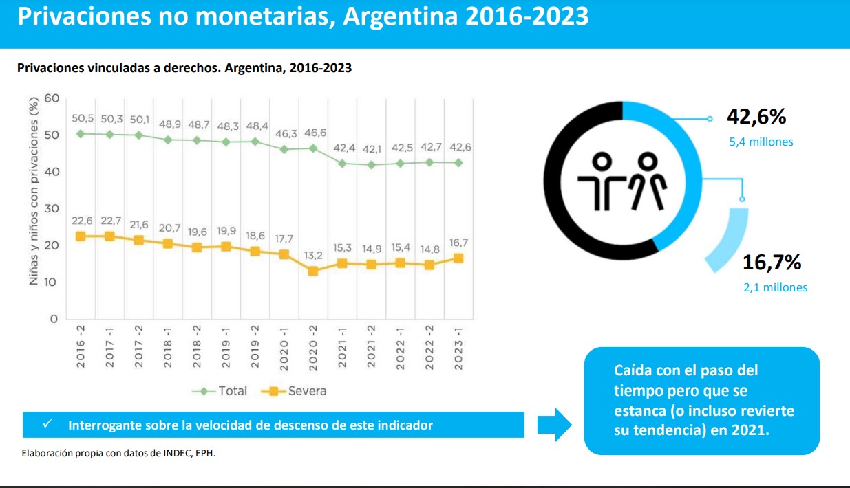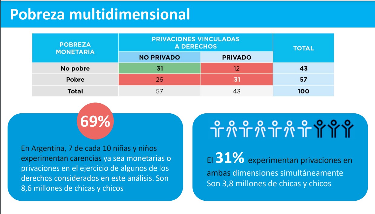 Argentina enfrenta un problema estructural de pobreza infantil: en los últimos 40 años nunca se perforó el piso del 30% de pobreza monetaria en niñez.