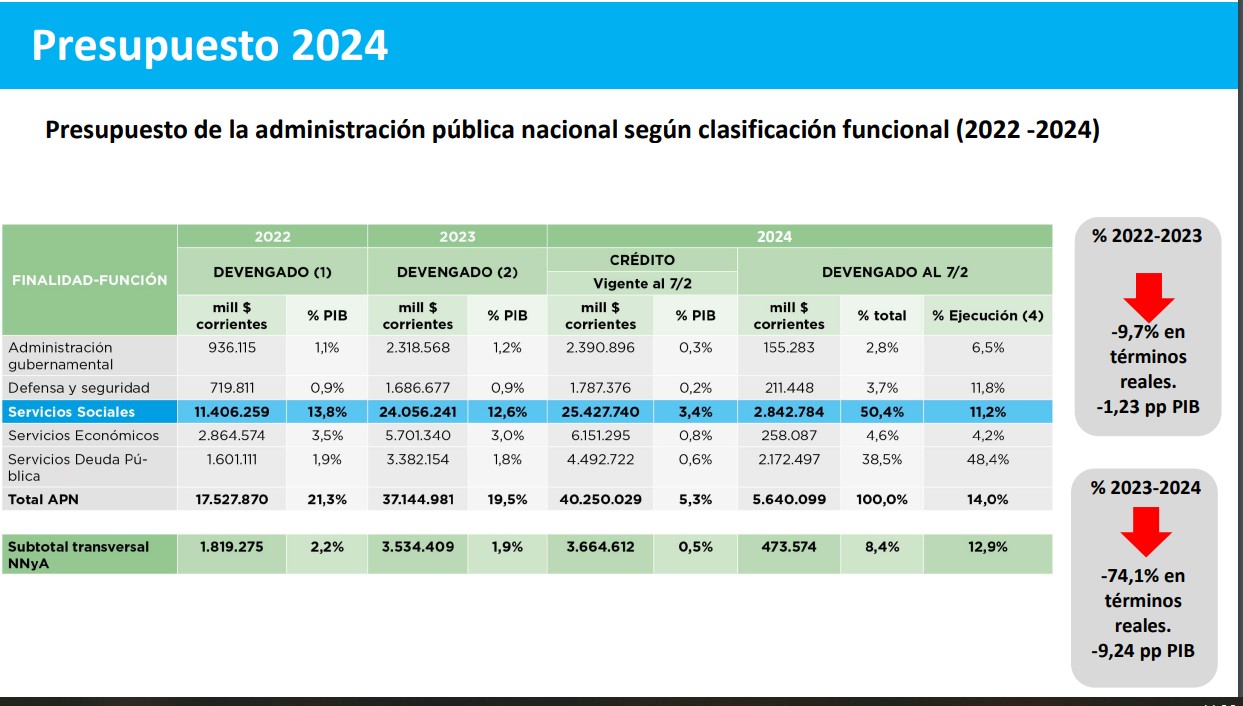 Esto se suma a una caída del transversal de niñez en 2023 de 17% en términos reales con respecto a 2022 (-0,35pp del PIB) y del 1,8% en términos reales en 2022 (0,1pp PIB).