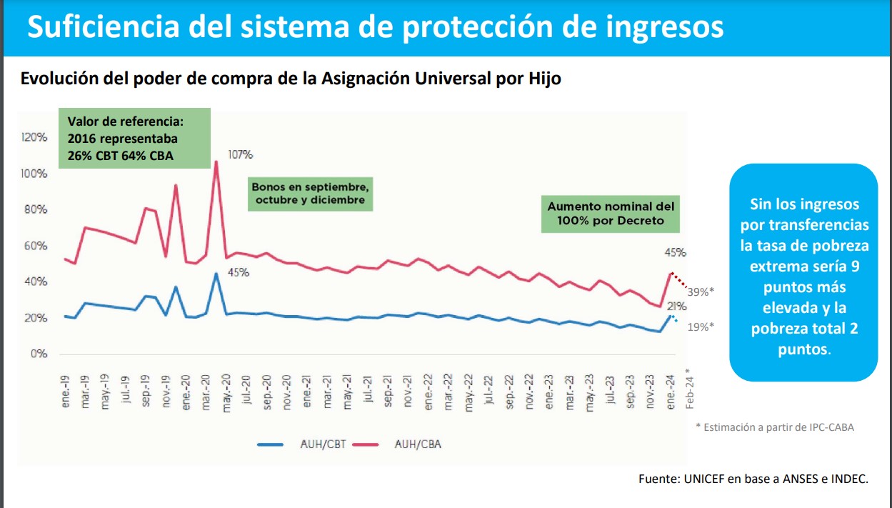 En particular, es imperioso ampliar las partidas presupuestarias de las políticas de protección de ingresos a los hogares para evitar que más niños y niñas caigan en la pobreza extrema.
