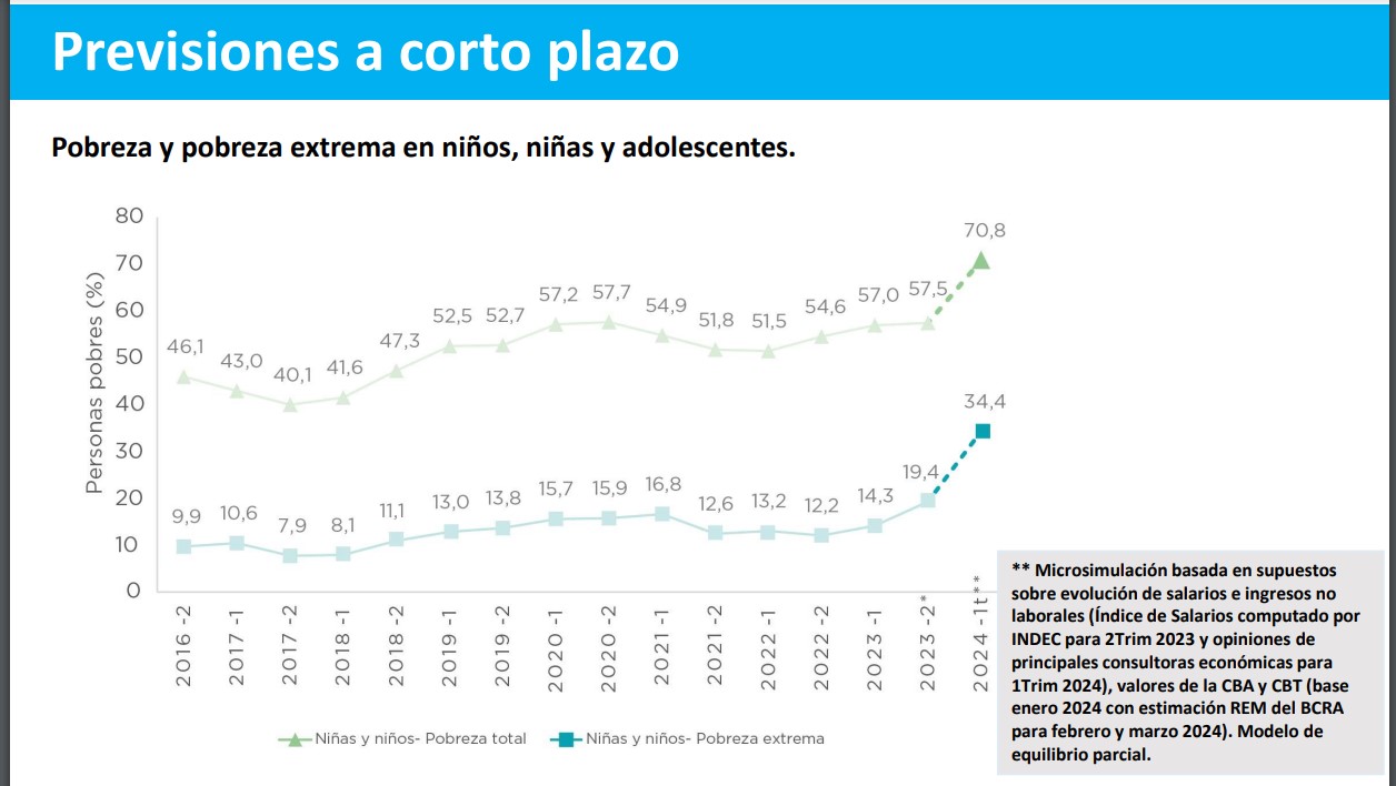 Según el informe la pobreza infantil escalaría, en el trimestre en curso al 70%