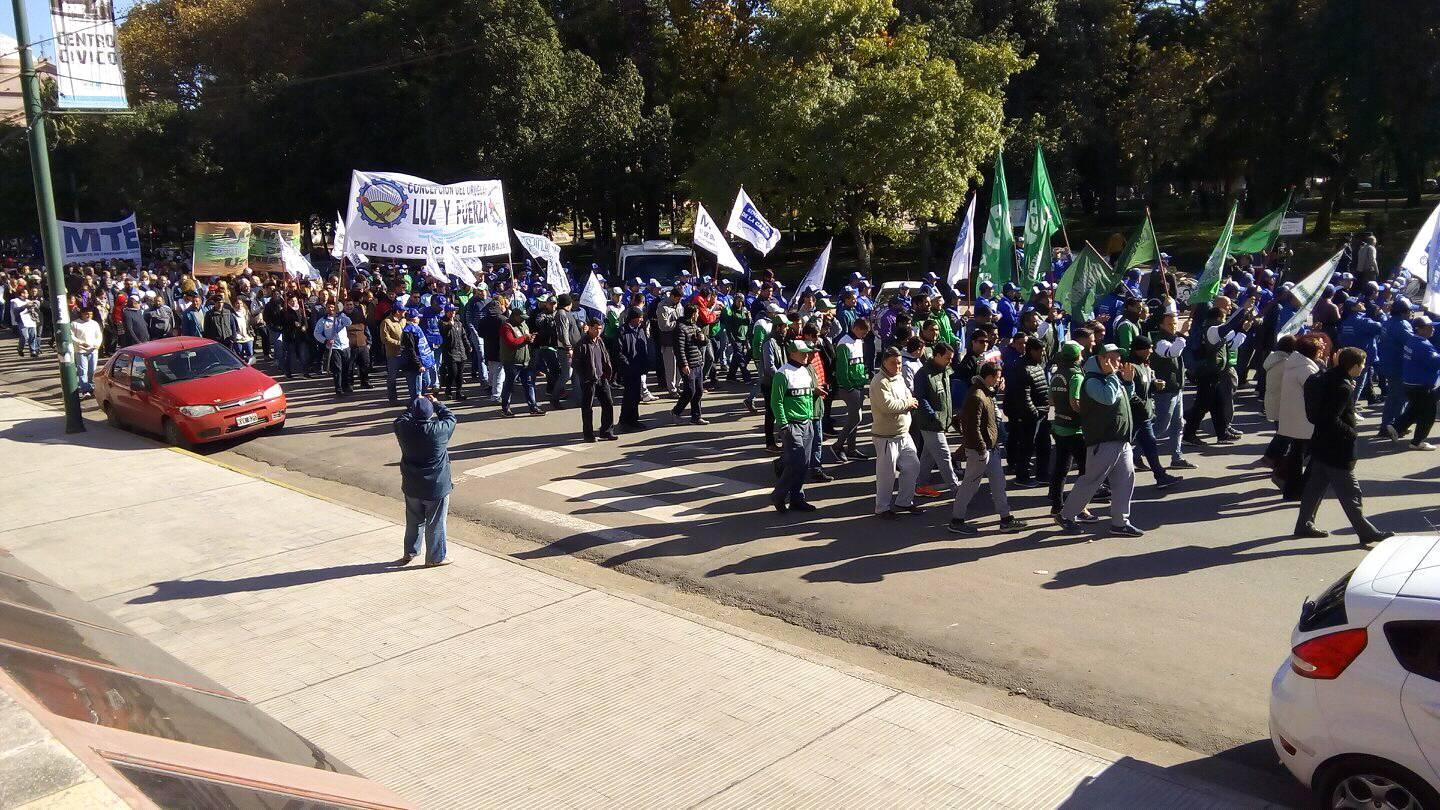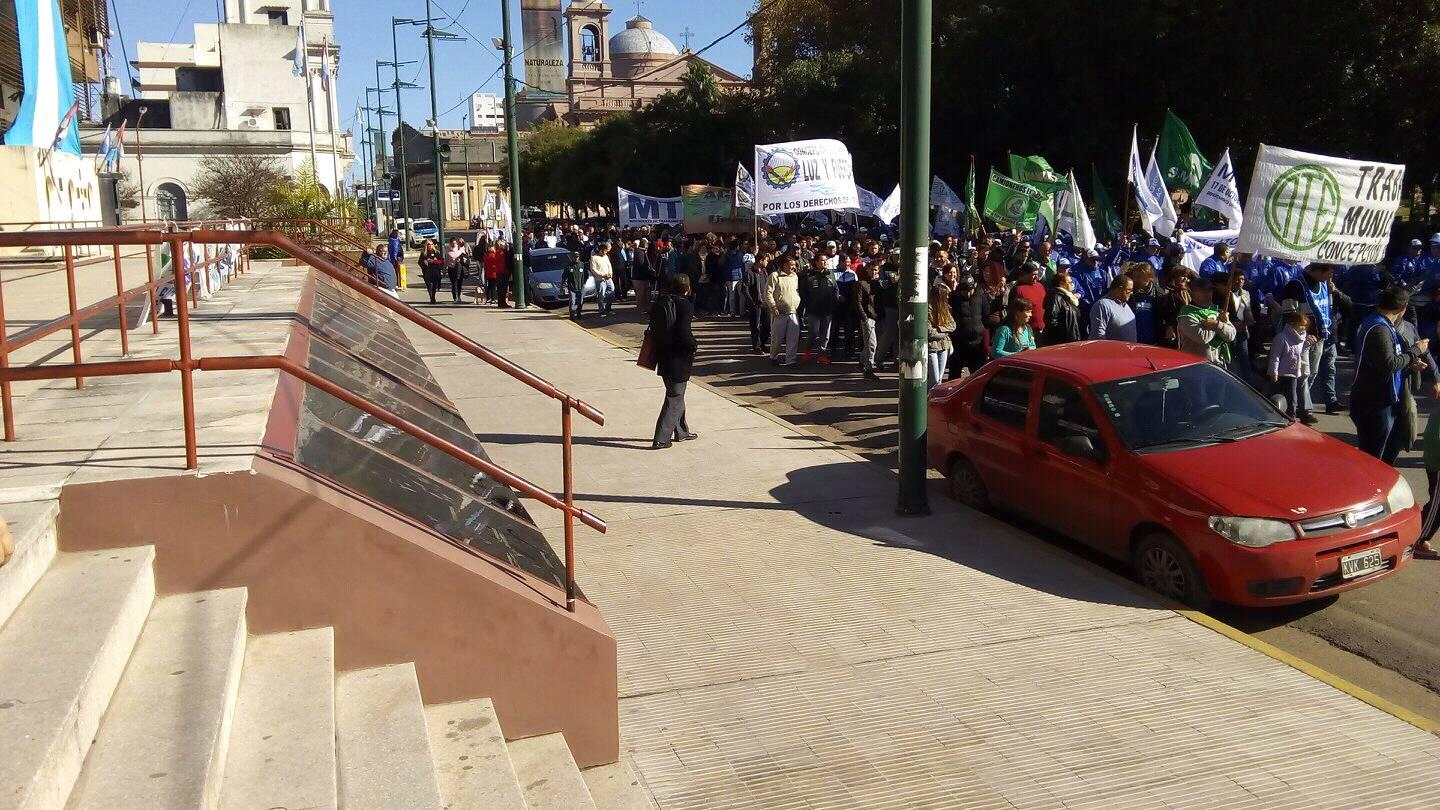 Con una marcha y movilización en plaza Ramírez los integrantes de diversas fuerzas gremiales se manifestaron en consonancia con el reclamo nacional de la CGT y las CTA contra las políticas económicas del gobierno de Mauricio Macri, incluso se vieron a los integrantes del bloque de concejales del FPV participando activamente del movimiento.